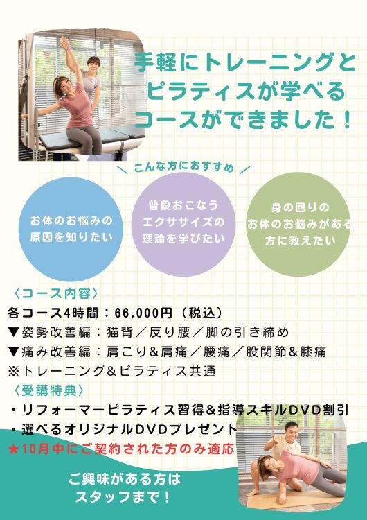 トレーナーになりたい人が知識と指導力を身につけ、実際にトレーナーになるまで育成、サポートをさせていただくものとなっております。その内容を「要望ごと」に切り分けて、手軽に学べるコースを新規に開設致しました✨